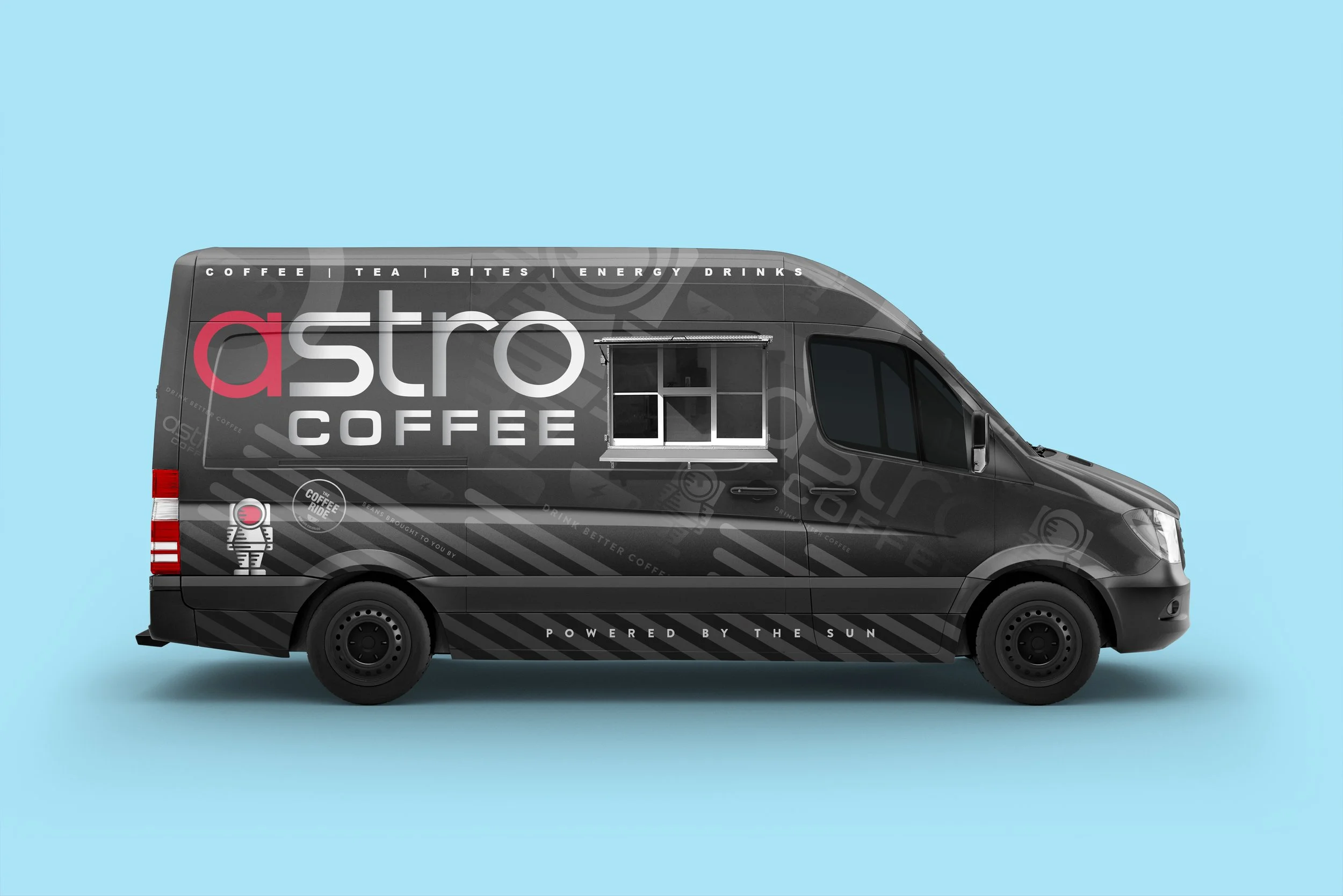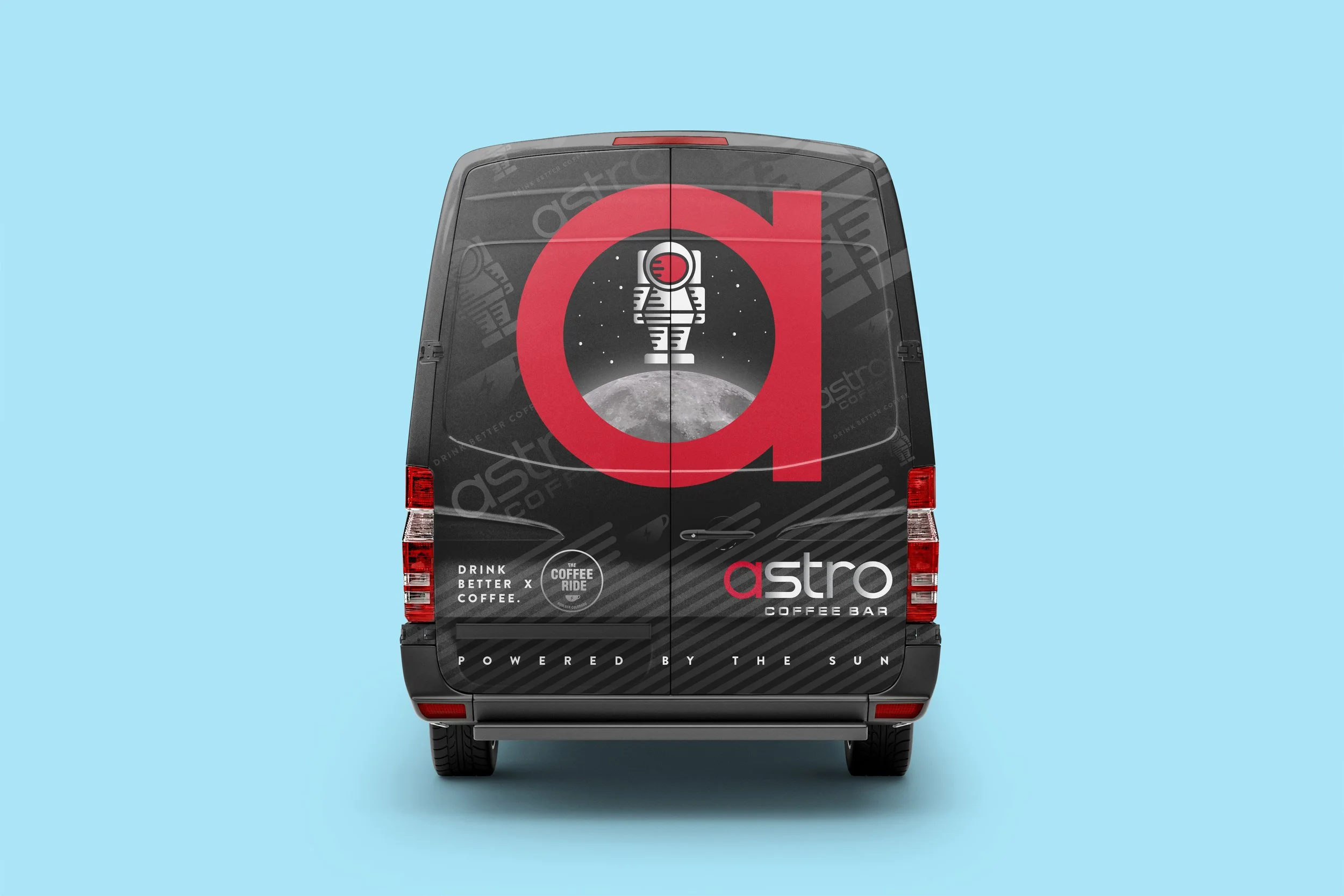 Astro Coffee Bar is coffee shop located in Boulder, Colorado. As the coffee industry has moved forward with drive through, double sided stand alones, and ordering ahead, the next big thing is mobile coffee. My goal was to bring the identity of this company to life, they have had a few rebrads and the goal was to keep the branding of the “a” and astro typeface and create a mascot for the company.